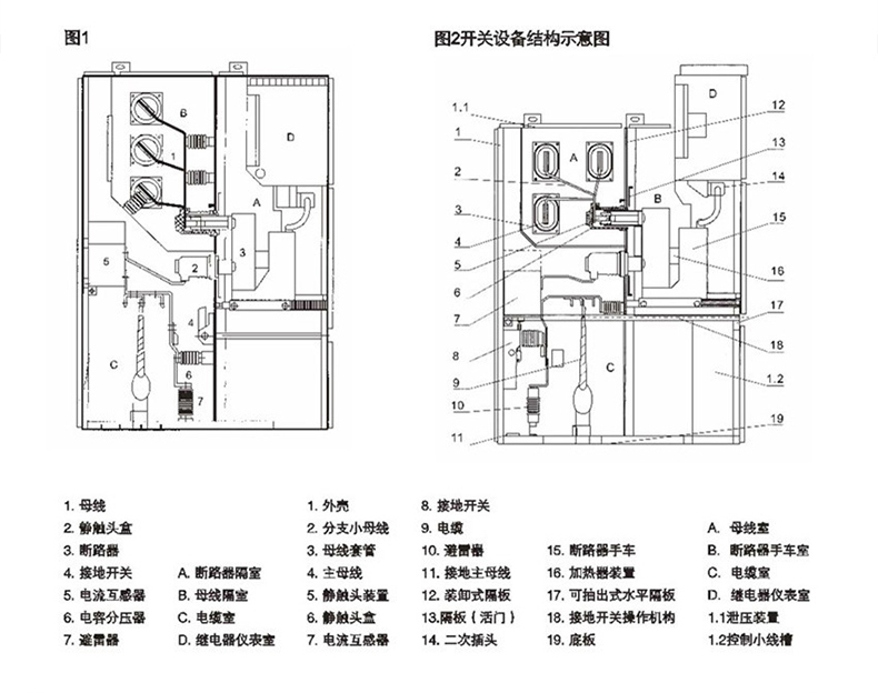 具有架空進出線、電纜進出線及其它功能方案,經排列、組合后能成為各種方案形式的配電裝置。本開關設備可以從正面進行安裝調試和維護,因此它可以背靠背組成雙重排列和靠墻安裝,提高了開關設備的安全性、靈活性,減少了占地面積。
